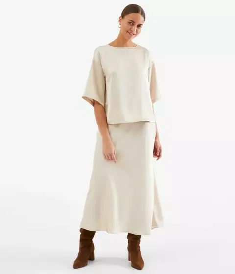 Tričko ze saténu s krásným jemným leskem. Skvěle se kombinuje s ladící sukní pro večerní outfit.
