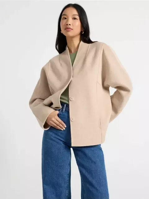 Bunda z vlněné směsi, která se hodí do jarního i podzimního počasí. Volnější střih zaručí komfort i při vrstvení.