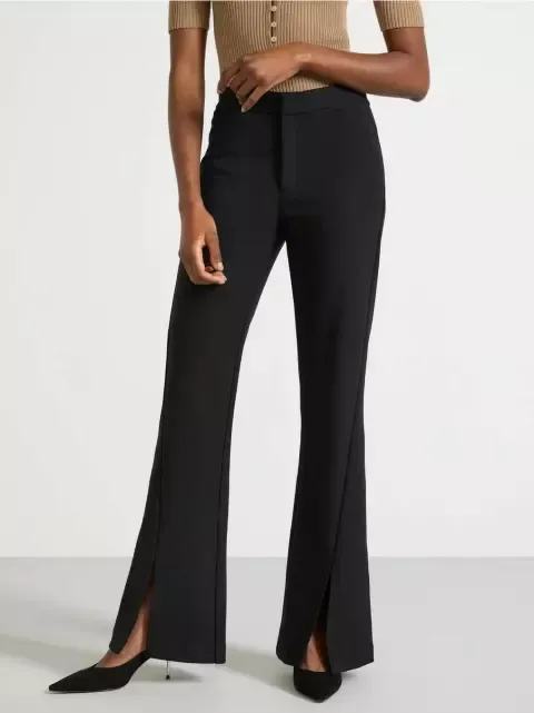 Černé kalhoty s elegantním rozparkem na konci nohavic. Pohodlné, snadno kombinovatelné a nadčasové.