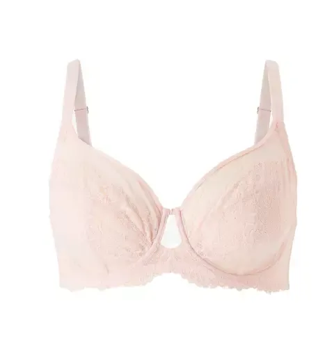 Růžová podprsenka s krajkou, kosticemi a nastavitelnými ramínky. V nabídce ve velikostech 75E–90H.
