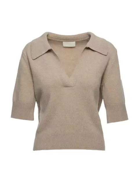Pletený svetr s krátkým rukávem a výstřihem do V