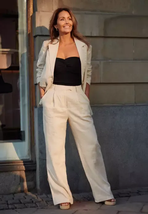 Pokud hledáte elegantní, ale vzdušné oblečení do města i na schůzky, béžový komplet z lnu je sázka na jistotu. Kombinace saka a volných kalhot vypadá moderně a svěže – obzvlášť během teplých jarních dní. Sako můžete nosit i s džínami, kalhoty zase s lehkým svetrem.