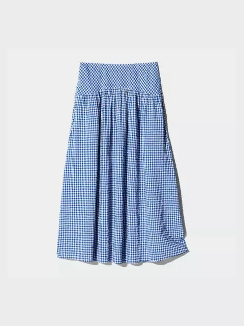 Řeč je o modré, kárované sukni od Uniqla, která je tento rok skutečným hitem nejen mezi mladými. Aktuálně ji seženete ve výprodeji za cenu, která vám nechá rezervu i na zmrzlinu v Ovocném Světozoru. Model nesoucí oficiální název Seersucker Volume Skirt ve vzoru Gingham spojil pohodlí s nadčasovým designem.