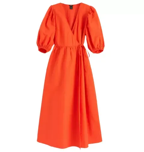 Zavinovací šaty v midi délce jsou letos naprostý trend. Tento model od Lindex má elegantní nabírané rukávy a je ušitý z lehkého, vzdušného materiálu, v němž se budete cítit svěže celý den.