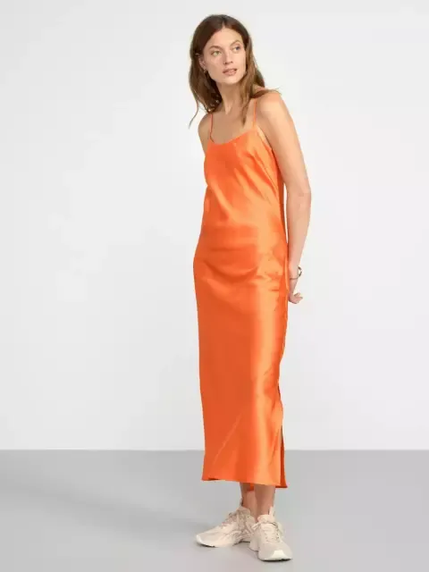 Když chcete do šatníku vnést trochu odvahy, zkuste sytě oranžové slipové šaty. Jsou minimalistické, elegantní a vhodné jak na běžné nošení, tak pro slavnostnější příležitosti.