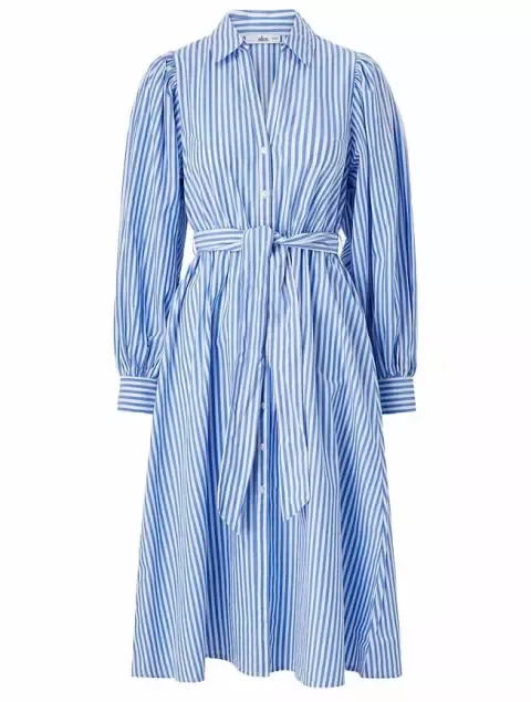 Košilový střih z příjemné bavlny s tenkými pruhy. V pase mají odnímatelný pásek na zavazování a nadýchané rukávy s řasením. Praktické a přitom stylové, ideální na pracovní schůzku i víkendové kafíčko v centru Prahy.