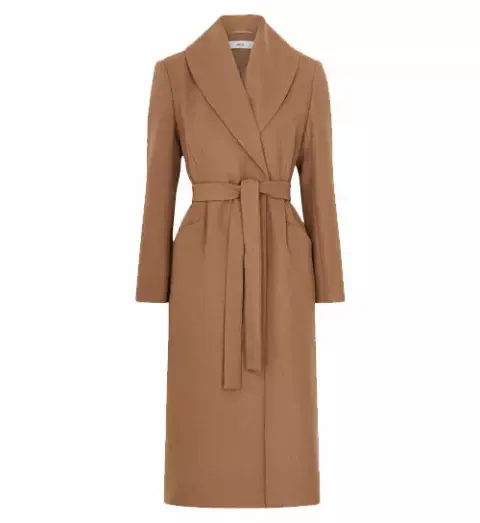 Materiál z kvalitní vlněné směsi je dostatečně hřejivý na zimní měsíce, kabát se zapíná na skrytý druk a má rozšířené klopy ve stylu šálového límce. Právě kombinace elegantního střihu a příjemného materiálu z něj dělá skvělou alternativu k ikonickým kabátům luxusních značek jako je Max Mara – ale bez astronomické ceny.
