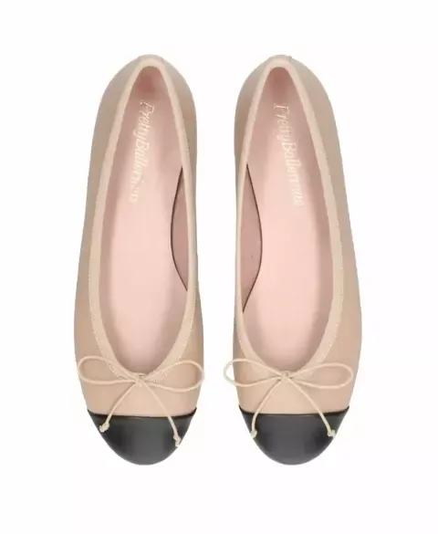 Béžové baleríny s černým detailem a výraznou mašlí vpředu – nadčasové a ženské.