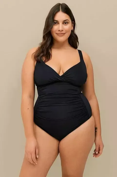 Klasika, která nikdy nevyjde z módy. Tyto černé jednodílné plavky mají vyjímatelné vycpávky, řasený přední díl a nastavitelná ramínka. Jsou speciálně navržené pro větší velikosti (44–60), takže padnou opravdu skvěle.