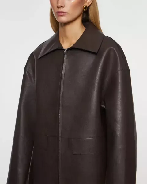 Hnědá oversize kožená bunda