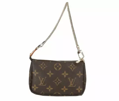 Příruční clutch kabelka z řady Pochette s typickým vzorem monogramu LV. Spolehlivě upoutá pohled, ať už jdete na pracovní schůzku nebo stylovou večeři. Zlatý řetízek a bezpečné zapínání na zip.