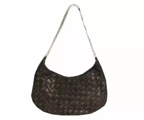 Ikonický design Intrecciato: malý černý model z jemné kůže se světlým pleteným ramenním páskem, který poznáte na první pohled. Hodí se do práce i na večírek v centru Prahy.