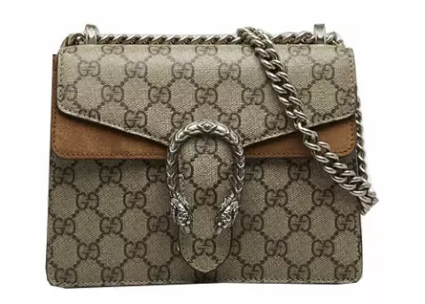 Nadčasová verze modelu Gucci Dionysus s klasickým monogramem a metalickou přezkou. Skvělý příklad toho, jak second hand kousek získává na exkluzivitě a osobitosti.
