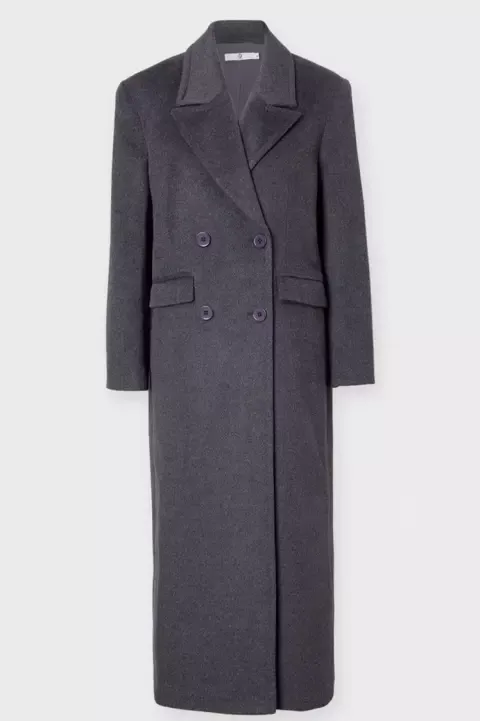 Klasika v prodlouženém střihu s dvouřadým zapínáním. Materiál tvoří 50 % vlna, značně zahřeje i v brněnských mrazech.