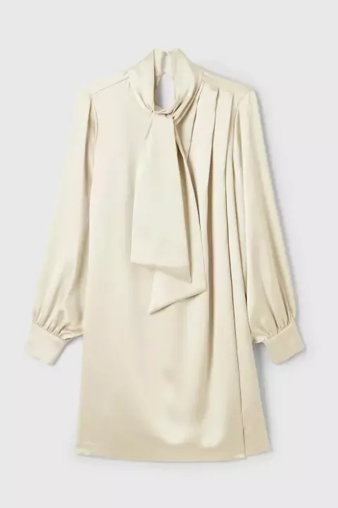 Minimalistický střih doplněný šálou a skládaným detailem na rameni. Skvěle se hodí k černým punčochám a lodičkám Baťa.