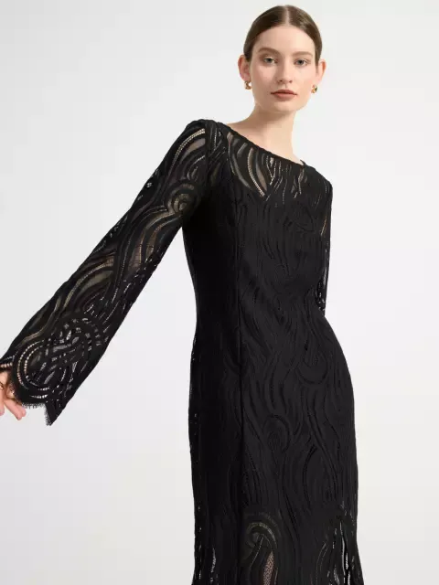 Pokud chcete zazářit opravdu slavnostně, sáhněte po této dlouhé kráse z krajky. Propracovaný detail je vidět i z dálky.